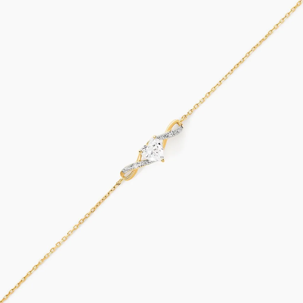 Bracelet Or Jaune 375/1000 C艙ur Oxyde De Zirconium Serti Griffes Maille Forcat 16+2Cm
