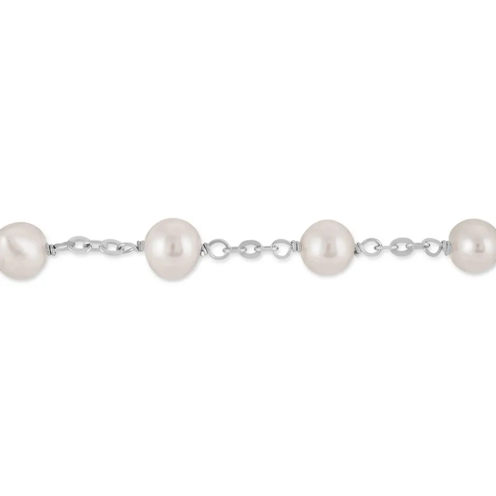 Bracelet Argent Blanc 925/1000 Perles De Culture Nacre 6/6.5mm Maille Forcat 18.5cm