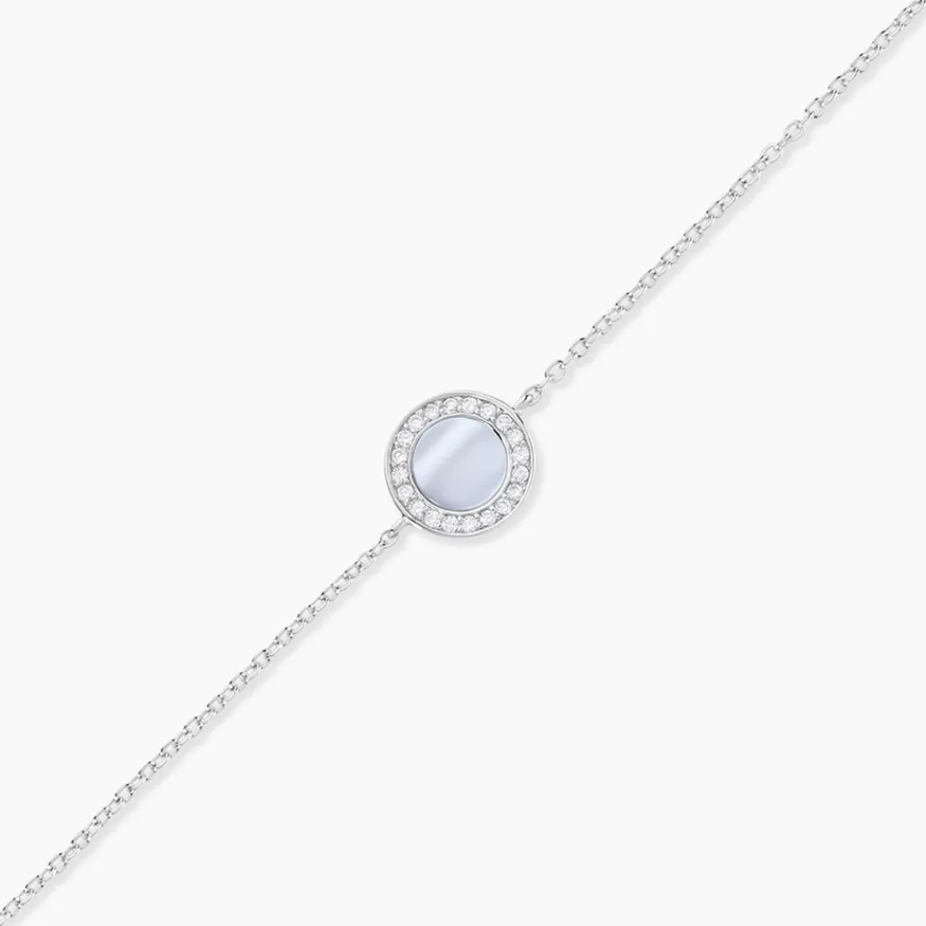 Bracelet Court Argent Blanc 925/1000 Cercle Nacre Entourage Oxyde De Zirconium Microsetting 16cm