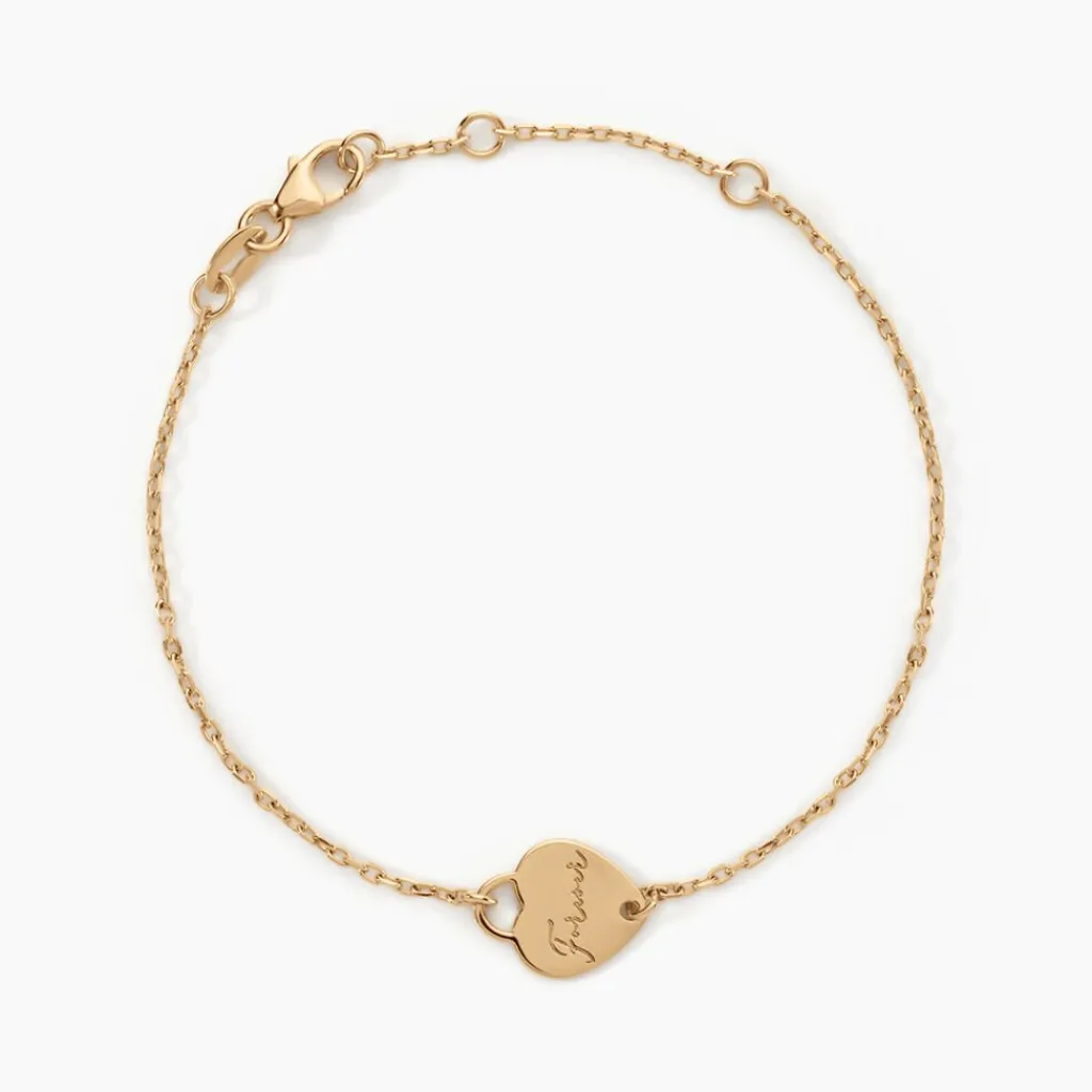 Bracelet Plaqué Or Jaune C艙ur Gravé Forever Maille Forçat 16+3cm