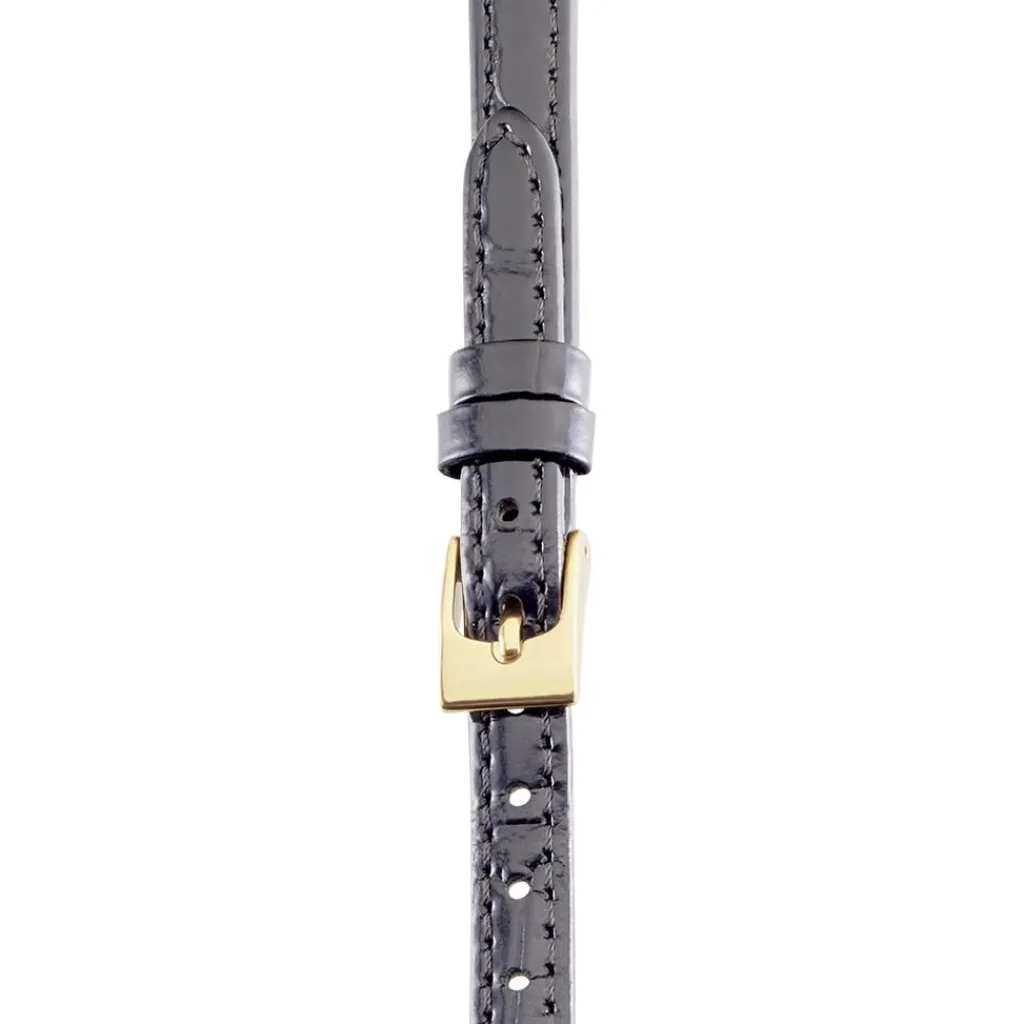 Bracelet De Montre Cuir Alligator Noir Boucle Doree 10mm