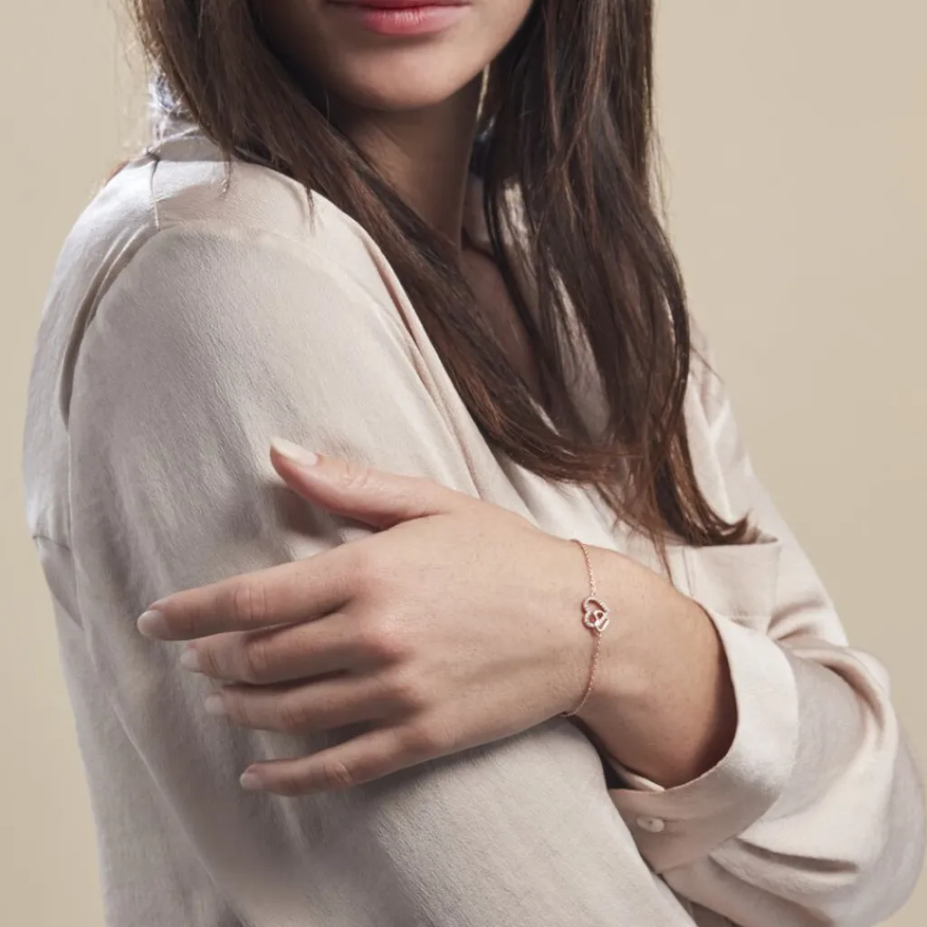 Bracelet Argent Rose 925/1000 Double C艙ur Pavage Oxydes De Zirconium Maille Forçat 19cm