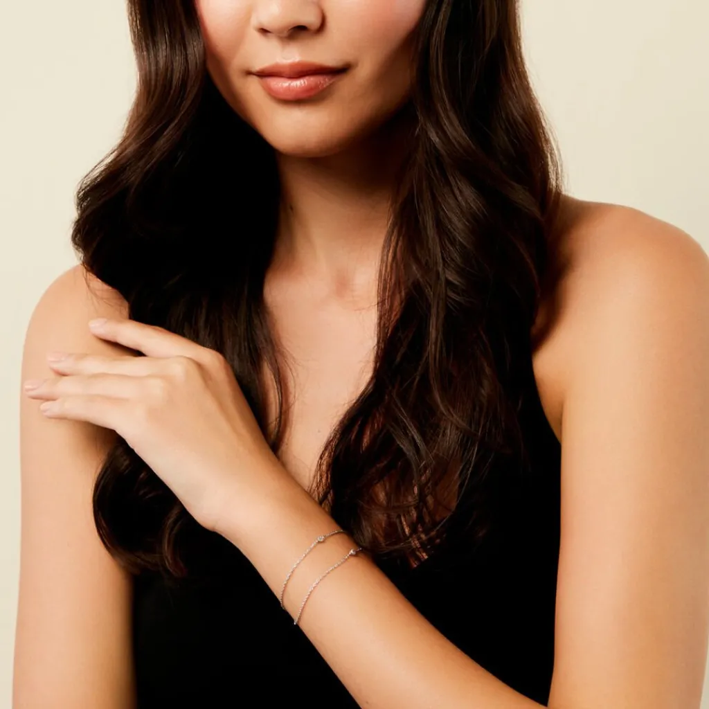Bracelet Argent Blanc 925/1000 Oxydes De Zirconium Entourage Perlé Double Rang Maille Forcat 16+3Cm