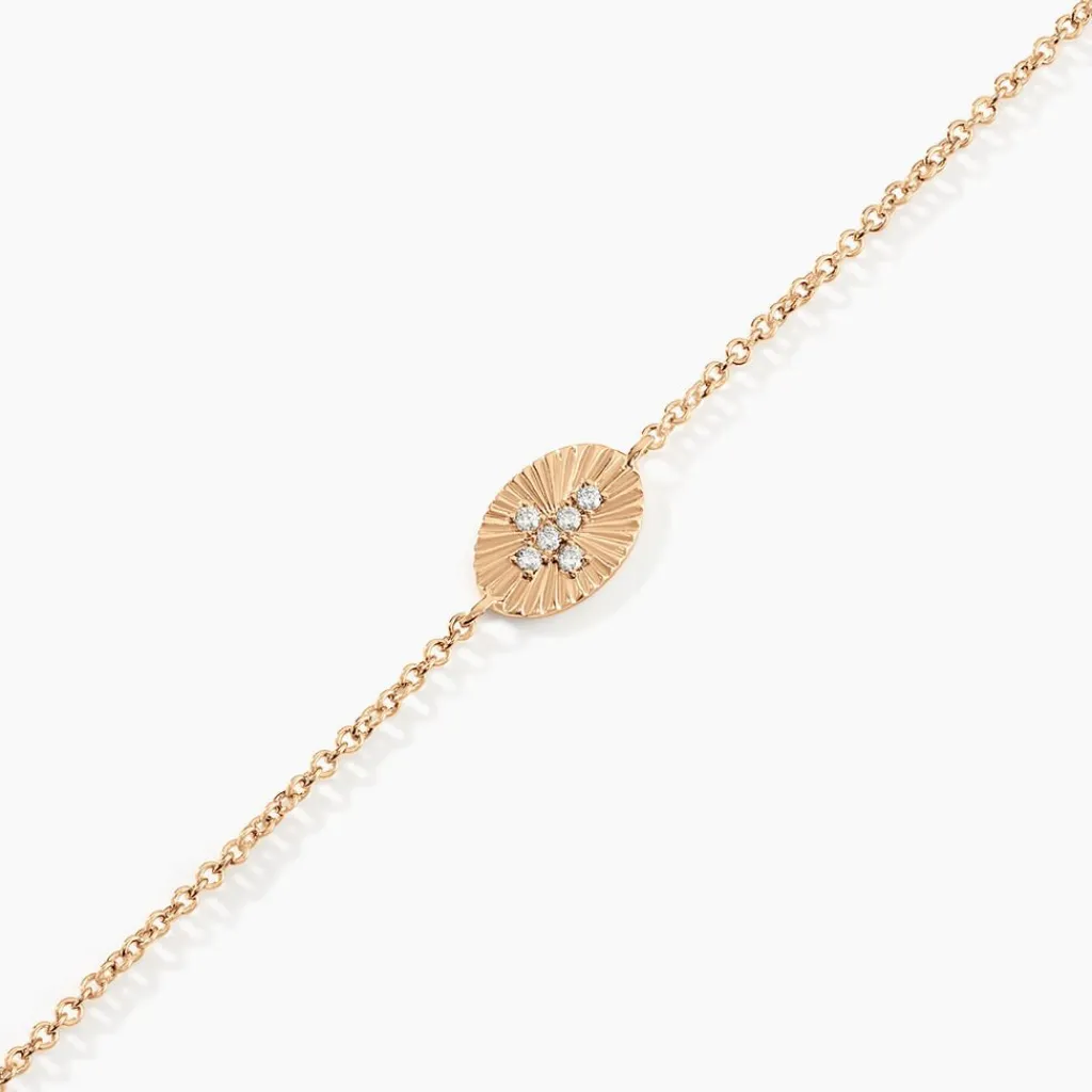 Bracelet Plaque Or Ovale Strié Motif Croix Pavage Oxydes De Zirconium Maille Forcat 16+2cm