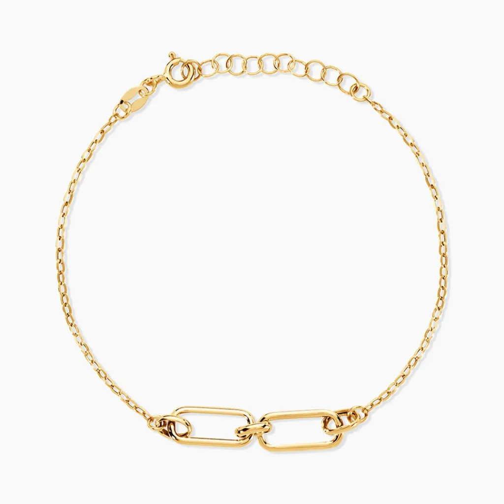 Bracelet Or Jaune 375/1000 Double Maillons Maille Forcat Ronde 16+3cm