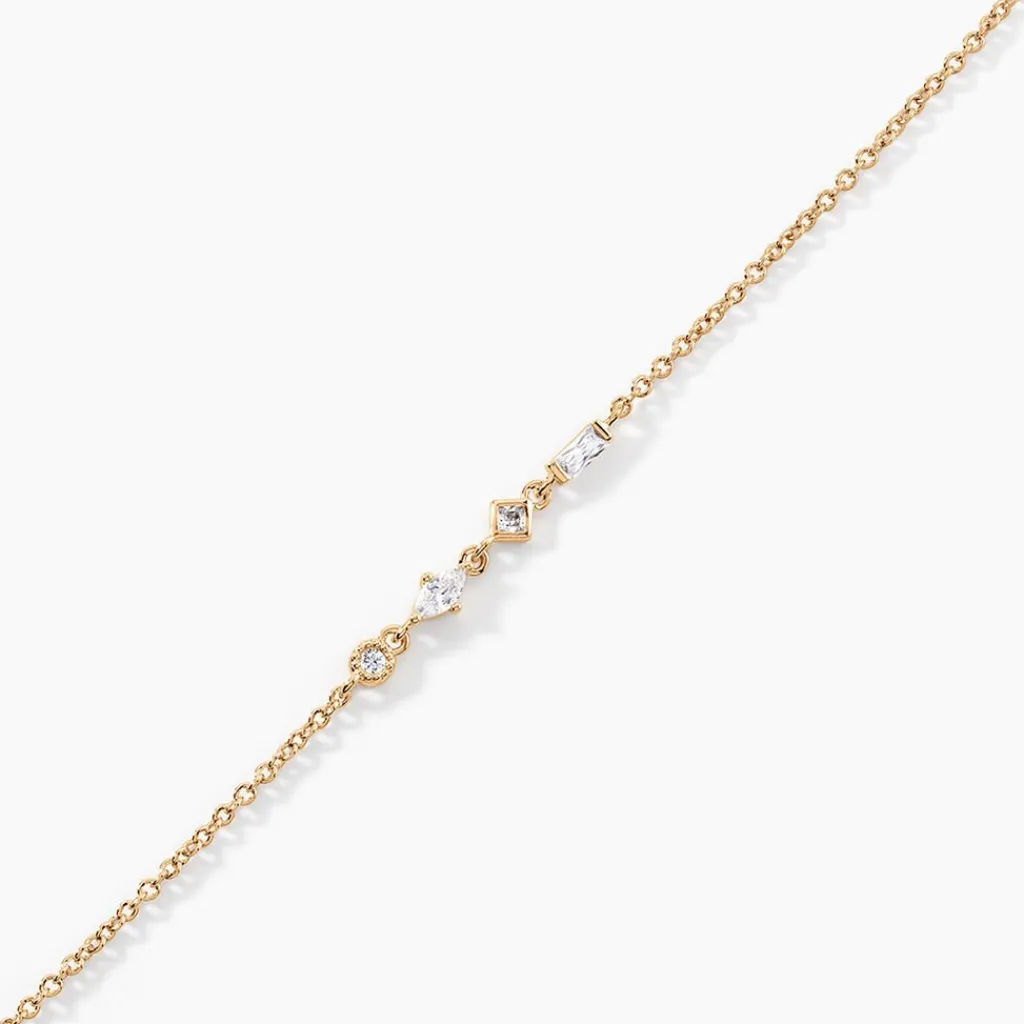 Bracelet Plaqué Or Jaune Oxydes De Zirconium Serti 4 Griffes Maille Jaseron 16+2Cm