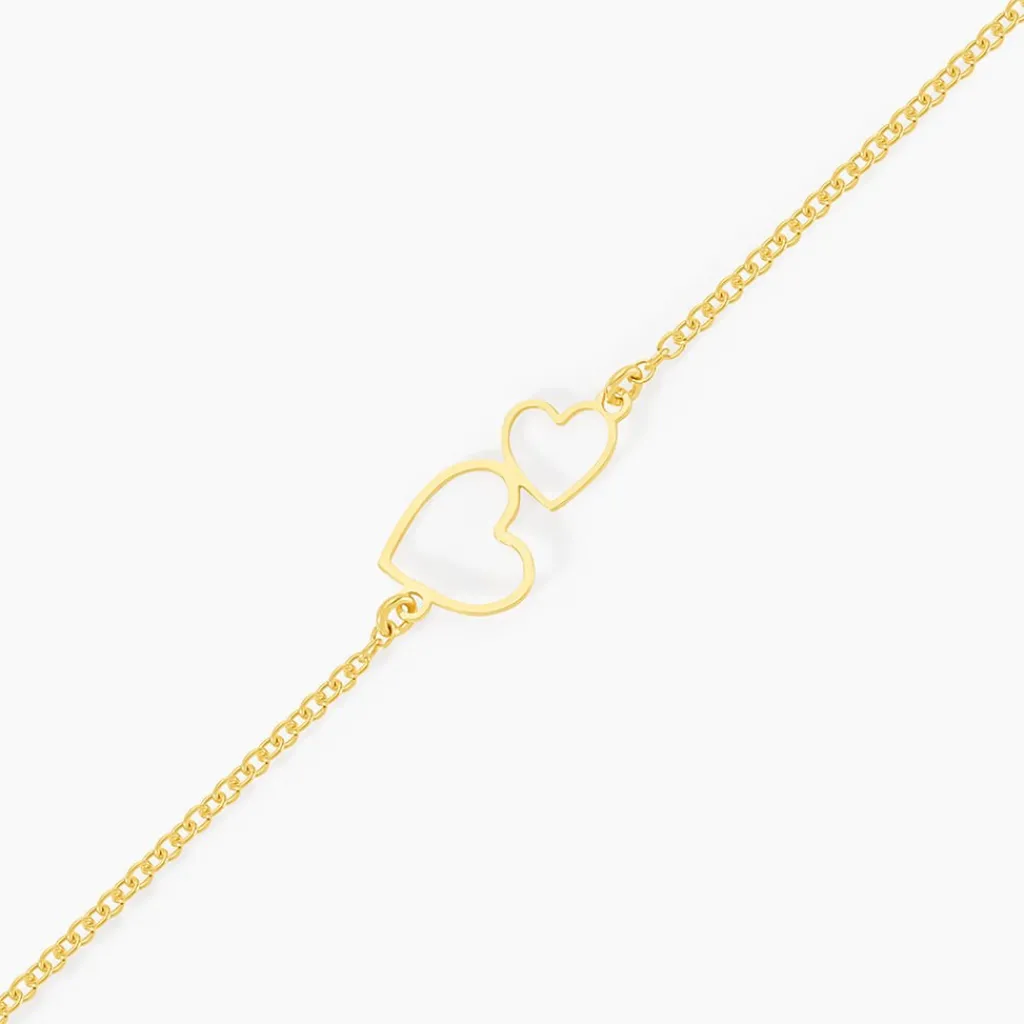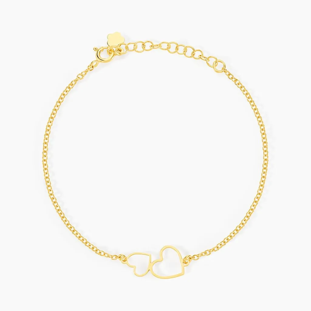 Bracelet Argent Jaune 925/1000 Double Coeurs Ajoures Maille Forcat 19cm