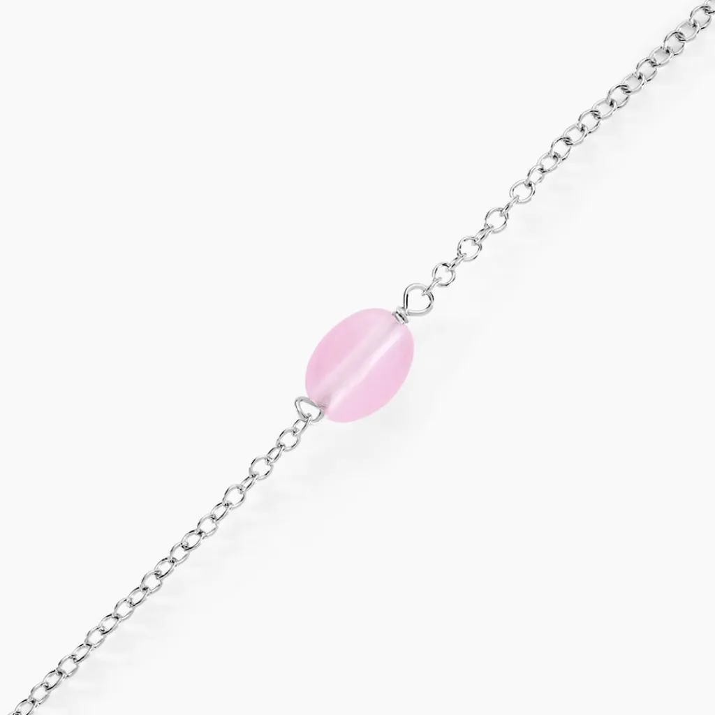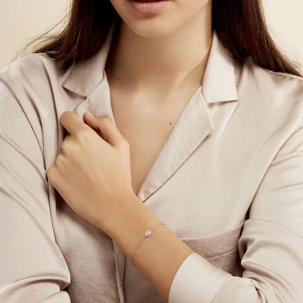 Bracelet Argent Blanc 925/1000 Pierre Oeil De Chat Rose Ovale Maille Forcat 19cm