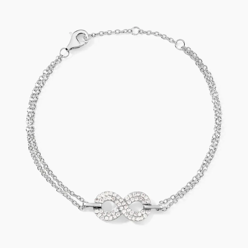 Bracelet Argent Blanc 925/1000 Infini Pavage Oxydes De Zirconium Maille Jaseron 16+3cm