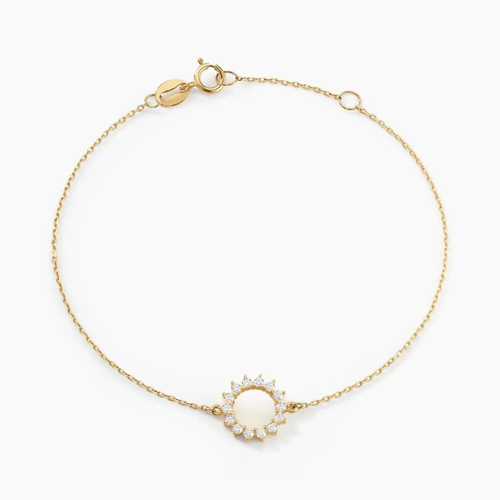 Bracelet Or Jaune 375/1000 Cercle Oxydes De Zirconium Blanc Serti 3 Griffes Maille Forçat 16+2cm
