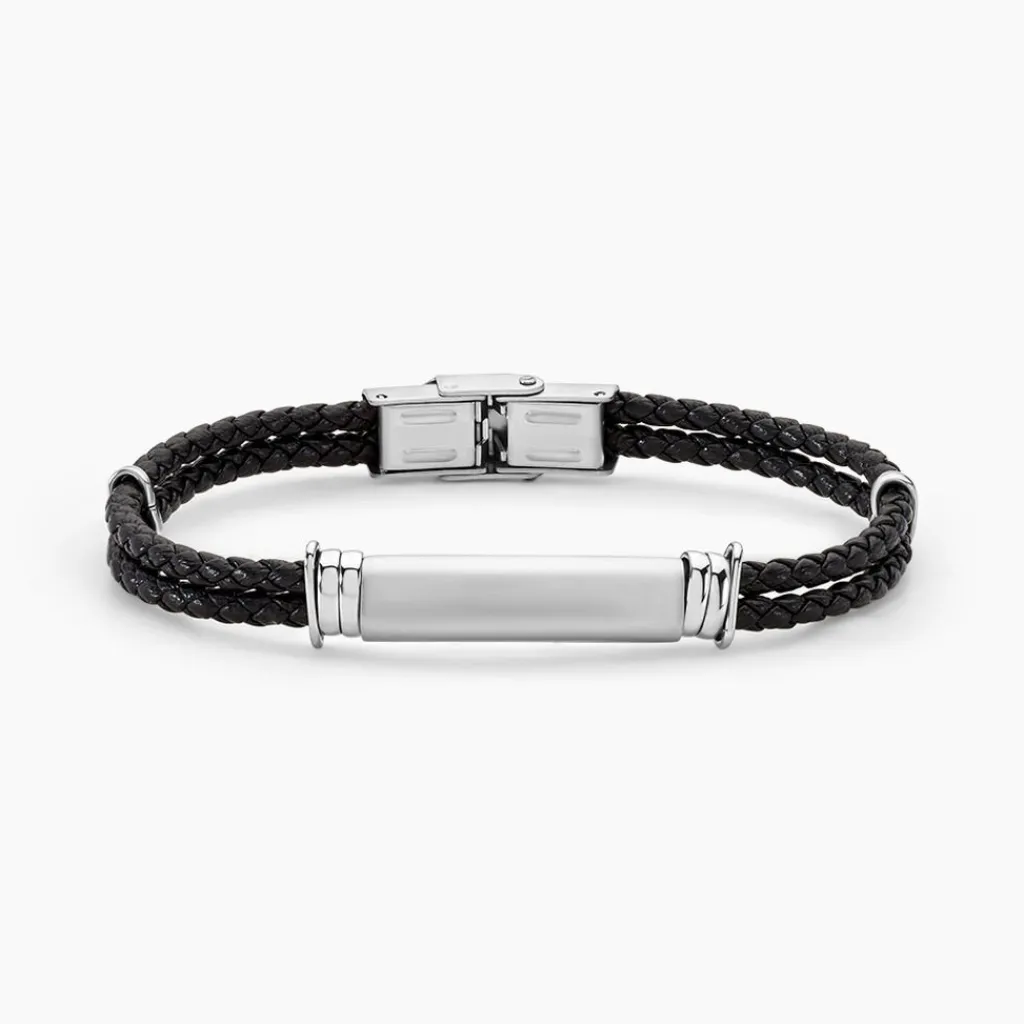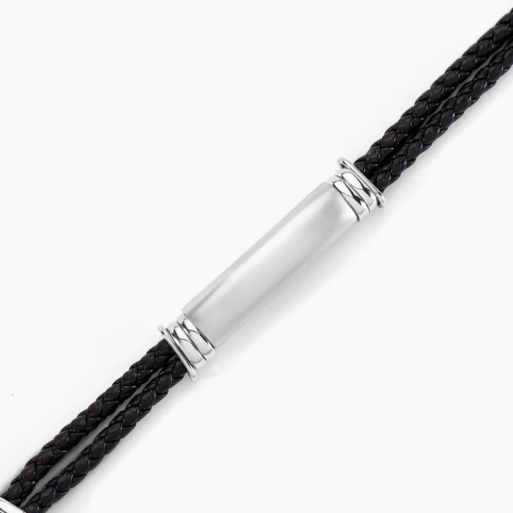Bracelet Acier Inoxydable Blanc Synthetique Noir Tressé Plaque Acier Inoxydable Blanc 21cm