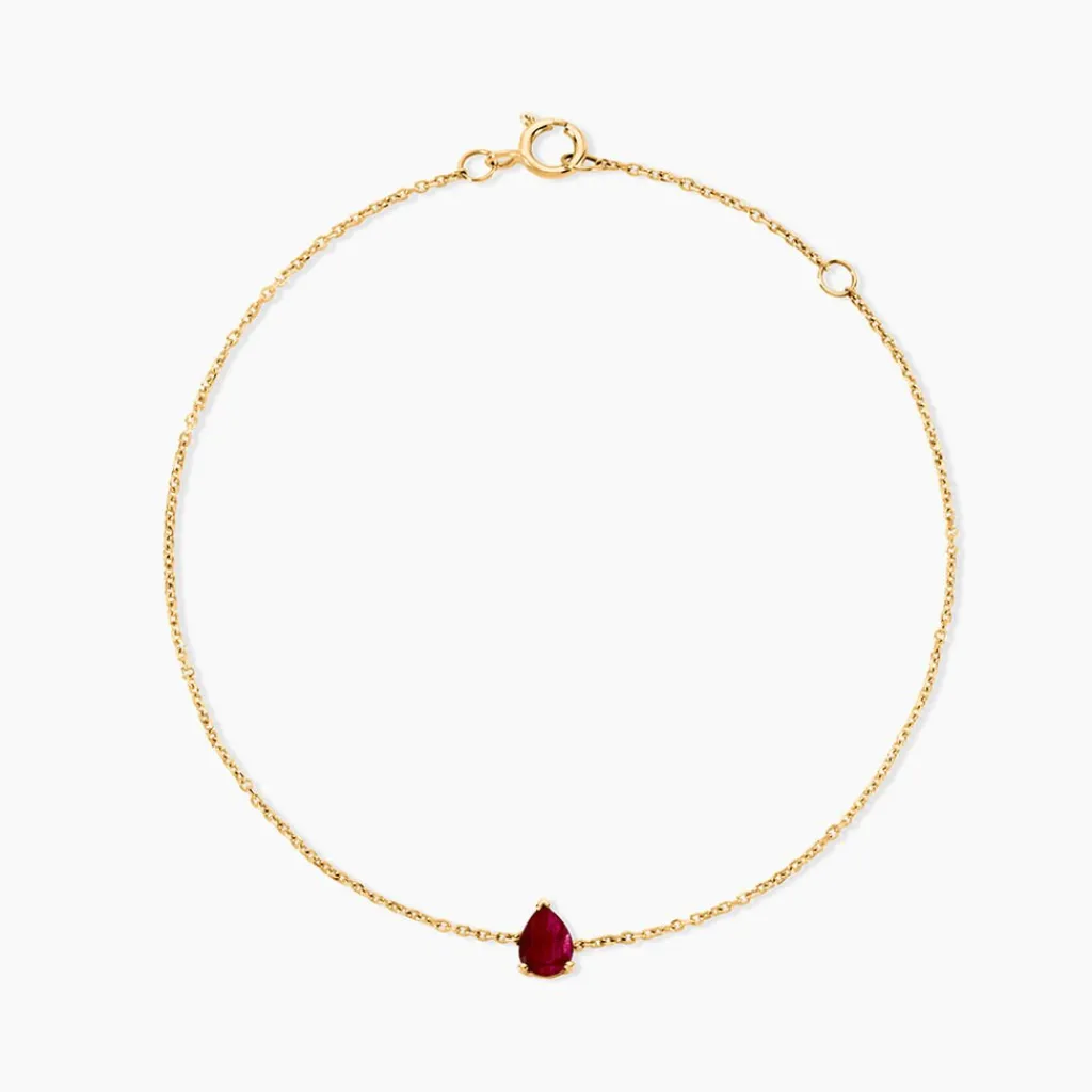 Bracelet Or Jaune 750/1000 Solitaire Rubis Poire 0,4Cts Serti 3 Griffes Maille Forcat 16+2Cm