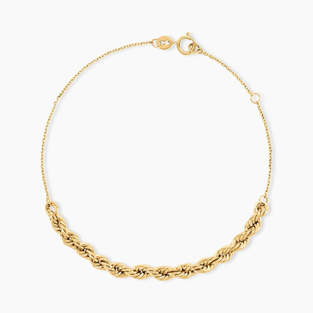 Bracelet Or Jaune 750/1000 Maille Corde 3,3Mm Et Maille Forcat 18Cm