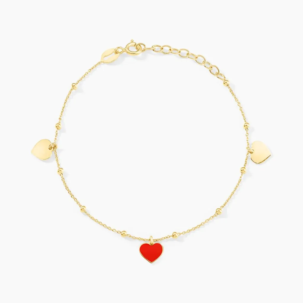 Bracelet Argent Jaune 925/1000 Pampilles C艙urs émail Rouge Maille Boules 16+3cm