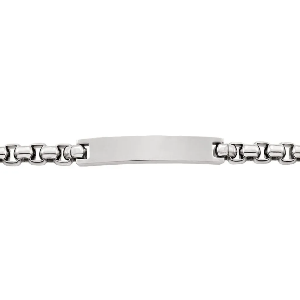 Bracelet Identite Acier Inoxydable Blanc Plaque Lisse Maille Jaseron Largeur 5mm 21cm