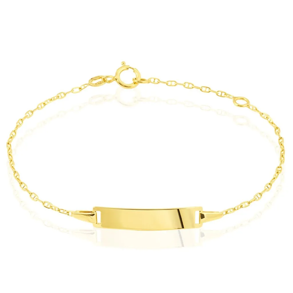 Bracelet Identite Bebe Or Jaune 375/1000 Plaque Rectangle Maille Marine Forcat 12/14cm