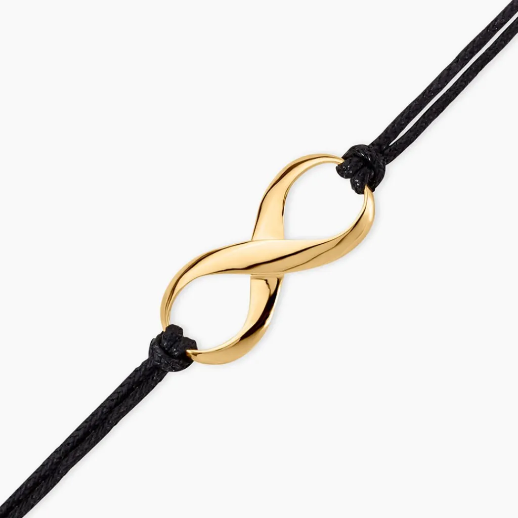 Bracelet Or Jaune 375/1000 Sur Cordon Coton Noir Ajustable
