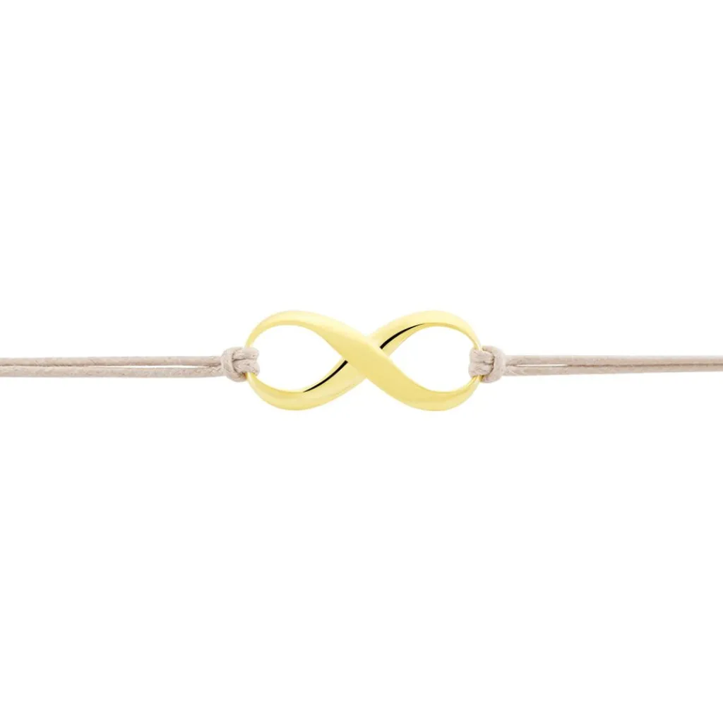 Bracelet Or Jaune 375/1000 Sur Cordon Coton Beige Ajustable