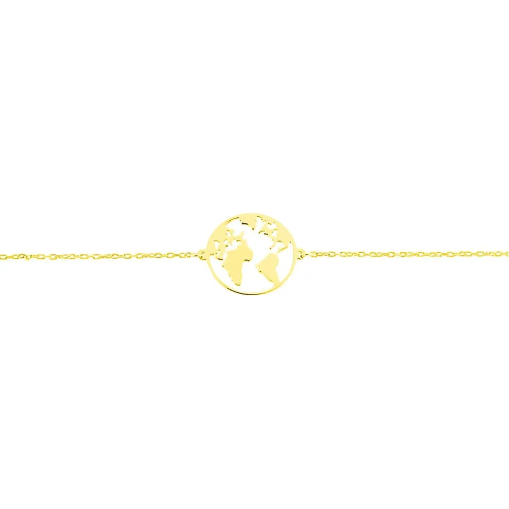 Bracelet Or Jaune 375/1000 Planete Monde Maille Forcat 16+2cm