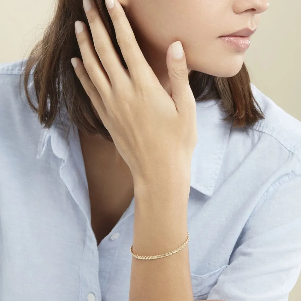 Bracelet Or Jaune 375/1000 Maille Palmier Ecrase 3.5mm 23cm