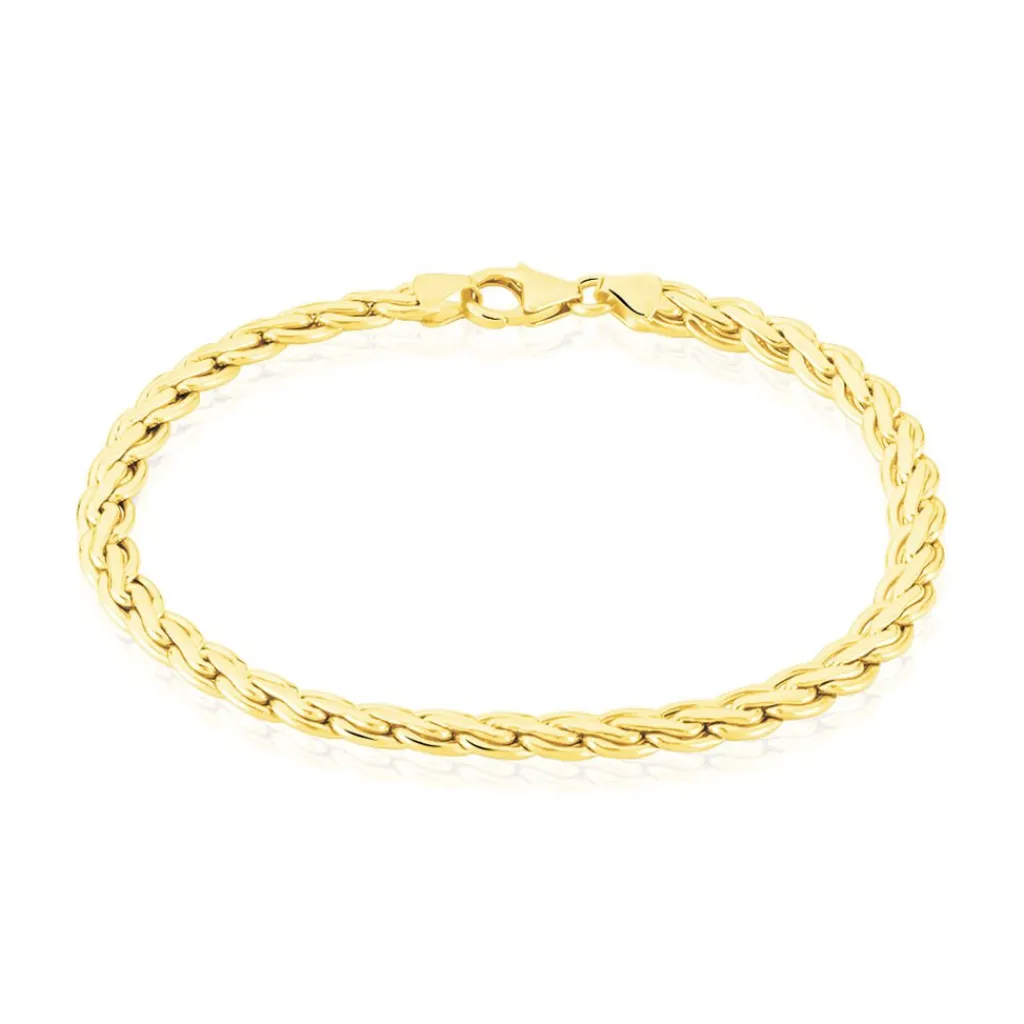 Bracelet Or Jaune 375/1000 Maille Palmier Ecrase 5mm 19cm