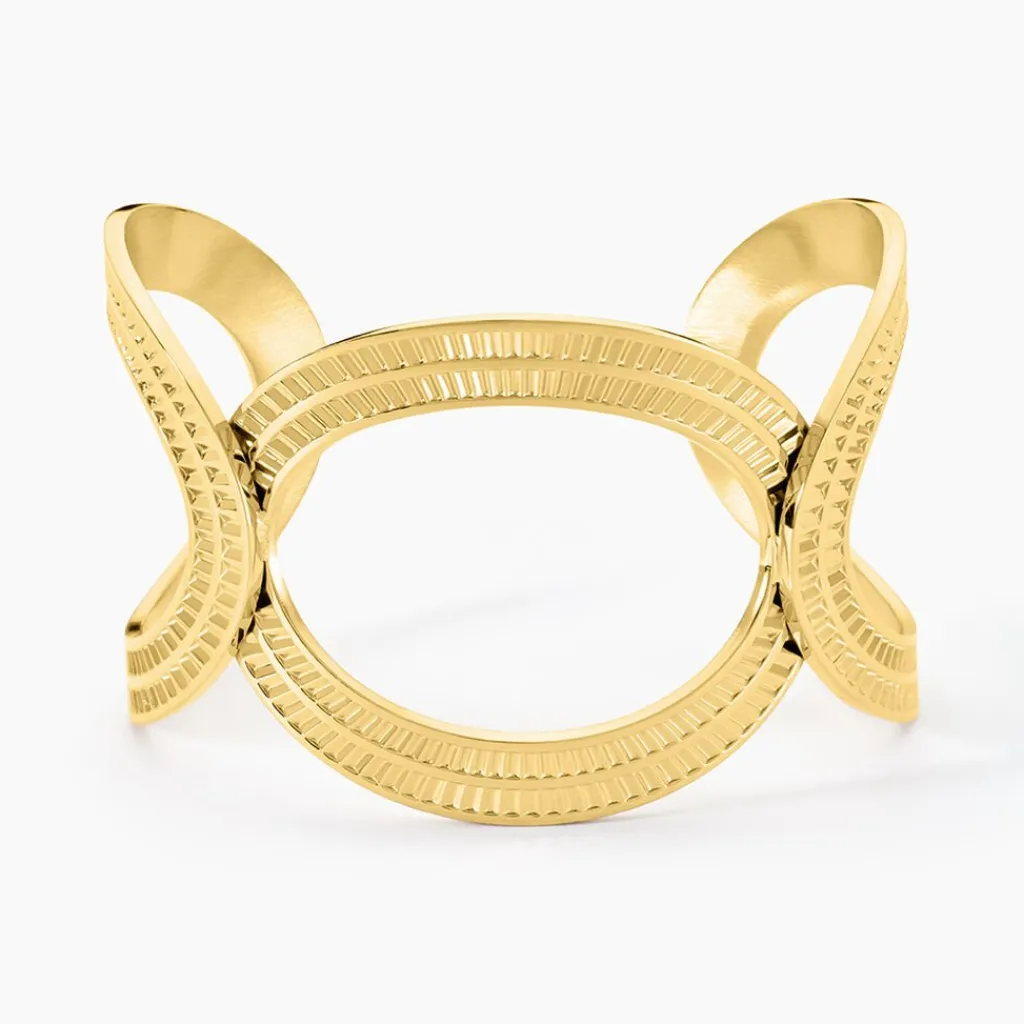 Bracelet Manchette Acier Dore Ouvert 3 Cercles Ajoures Ciseles