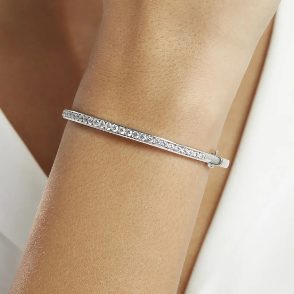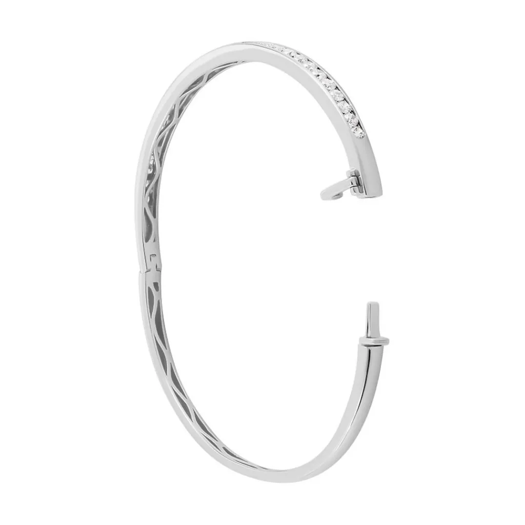 Bracelet Jonc Or Blanc 375/1000 Oxydes De Zirconium Sertis Rails 4mm Diam 52x60mm