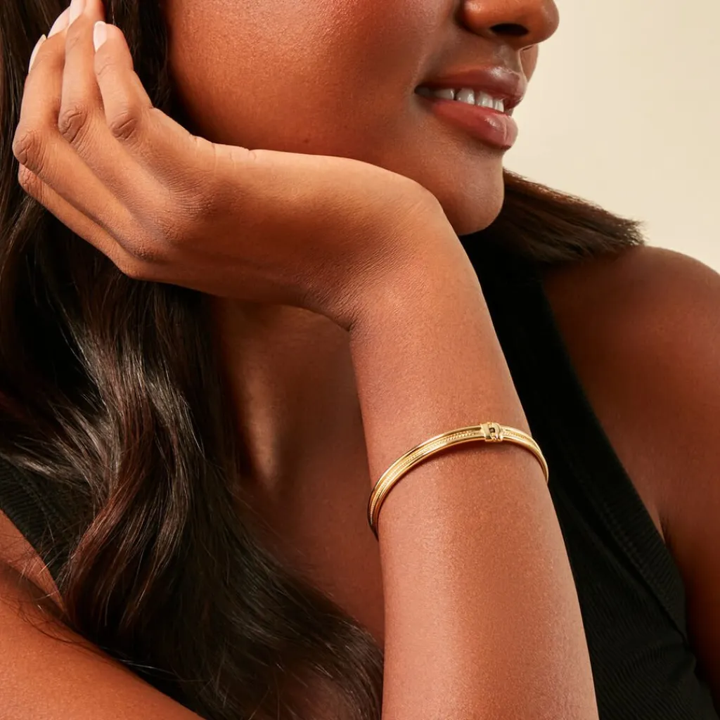 Bracelet Jonc Or Jaune 750/1000 Fil Rond Lisse Et Piquete Diametre 50X60Mm