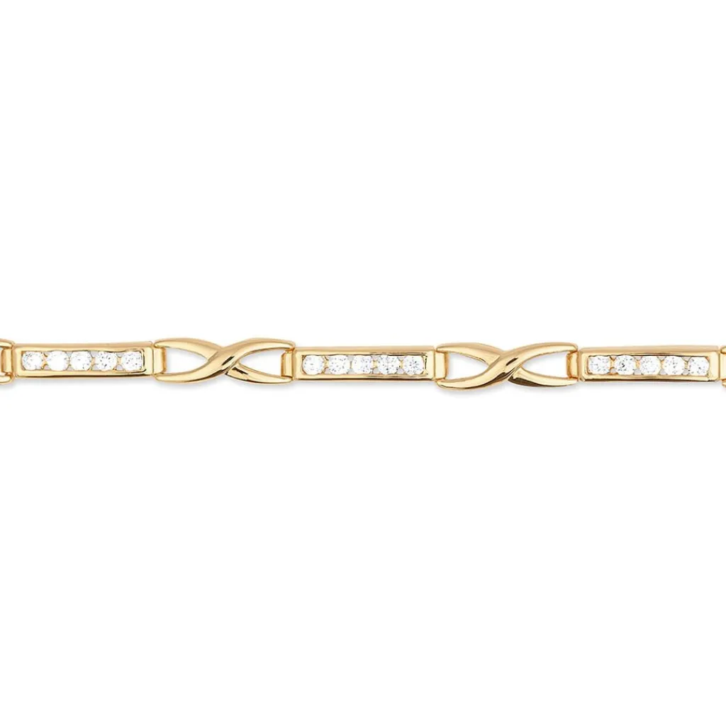 Bracelet Plaqué Or Jaune Oxydes De Zirconuim Rigide 18cm