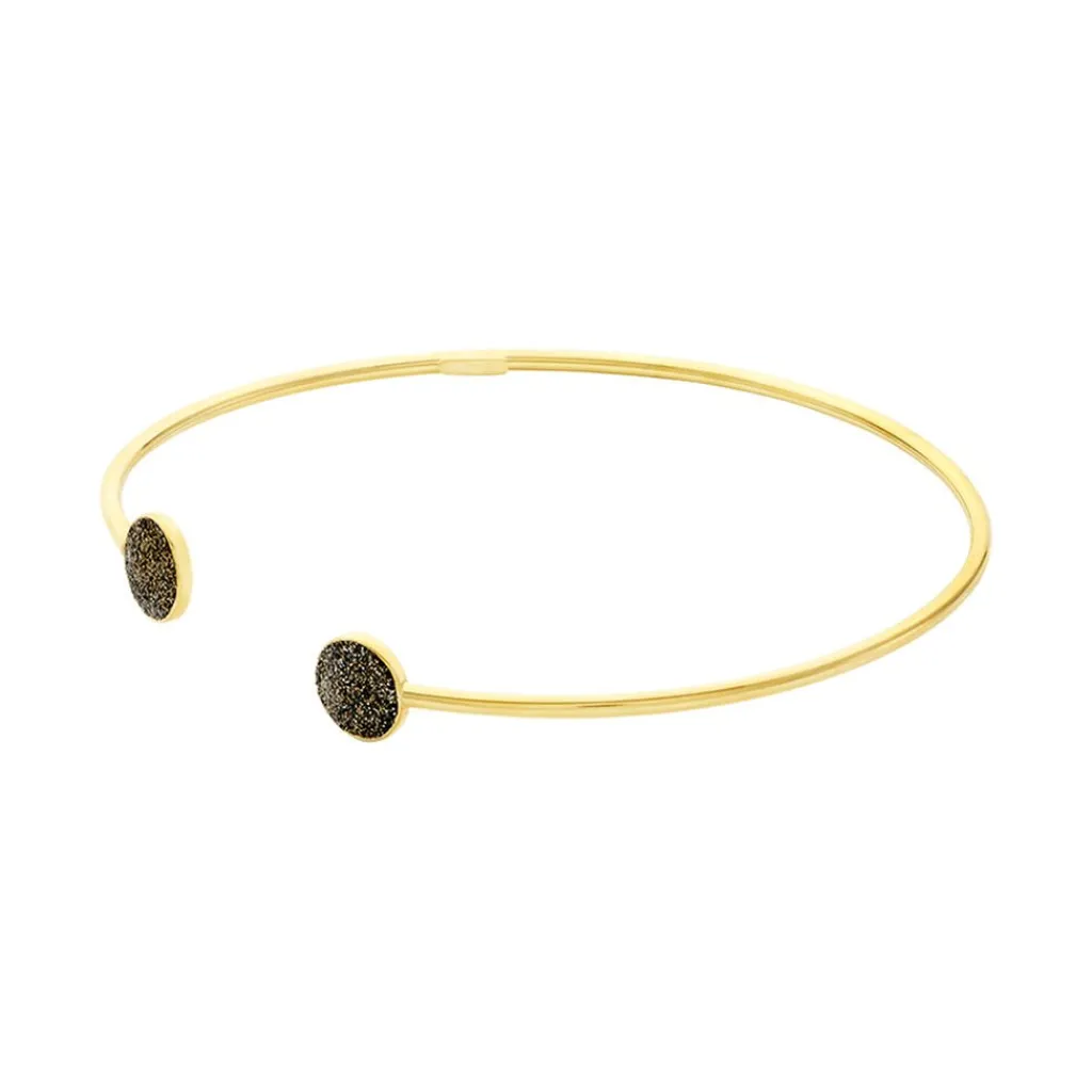 Bracelet Jonc Or Jaune 375/1000 Double Pastilles Glitter Bronze