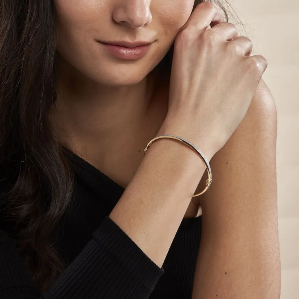 Bracelet Jonc Or Jaune 375/1000 Fil Plat 3.5mm Glitter Silver Diamètre 60mm