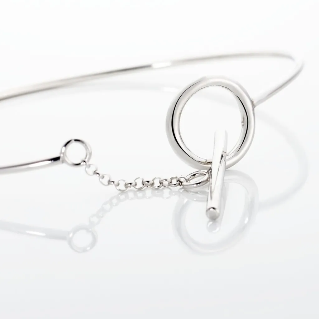 Bracelet Jonc Argent Blanc 925/1000 Cercle Ajoure Barrette Horizontale Diametre 65mm