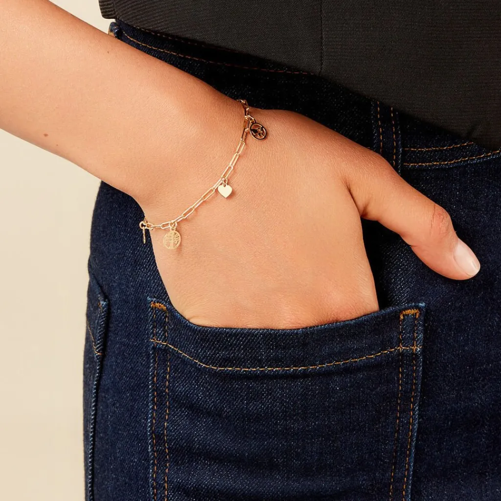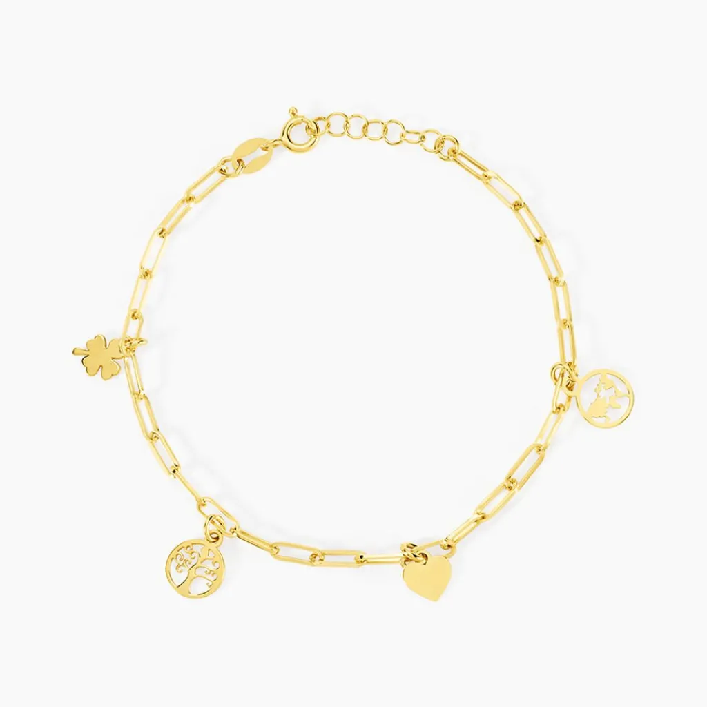 Bracelet Argent Jaune 925/1000 Pampilles Trefle Arbre De Vie C艙ur Carte Maille Cheval 18cm