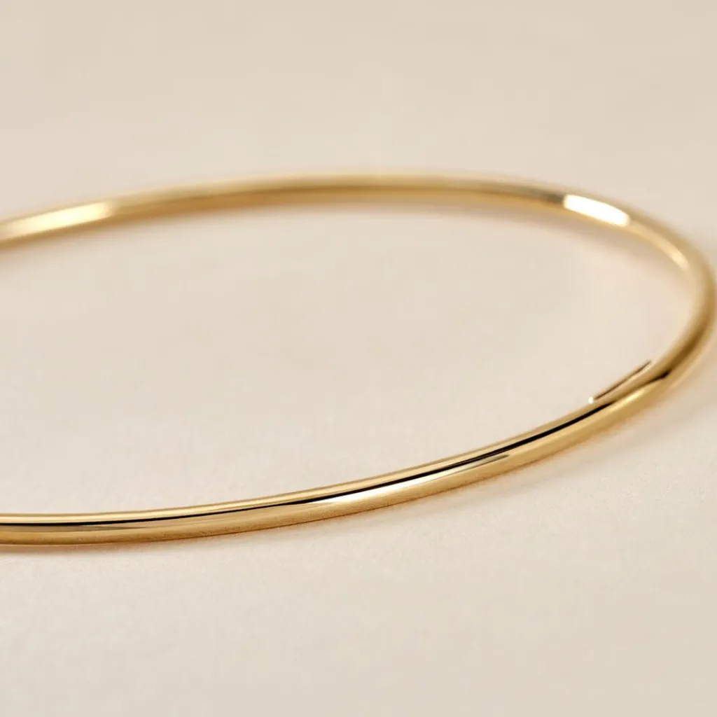 Bracelet Jonc Or Jaune 375/1000 Fil Rond Massif 2mm Diamètre 65mm