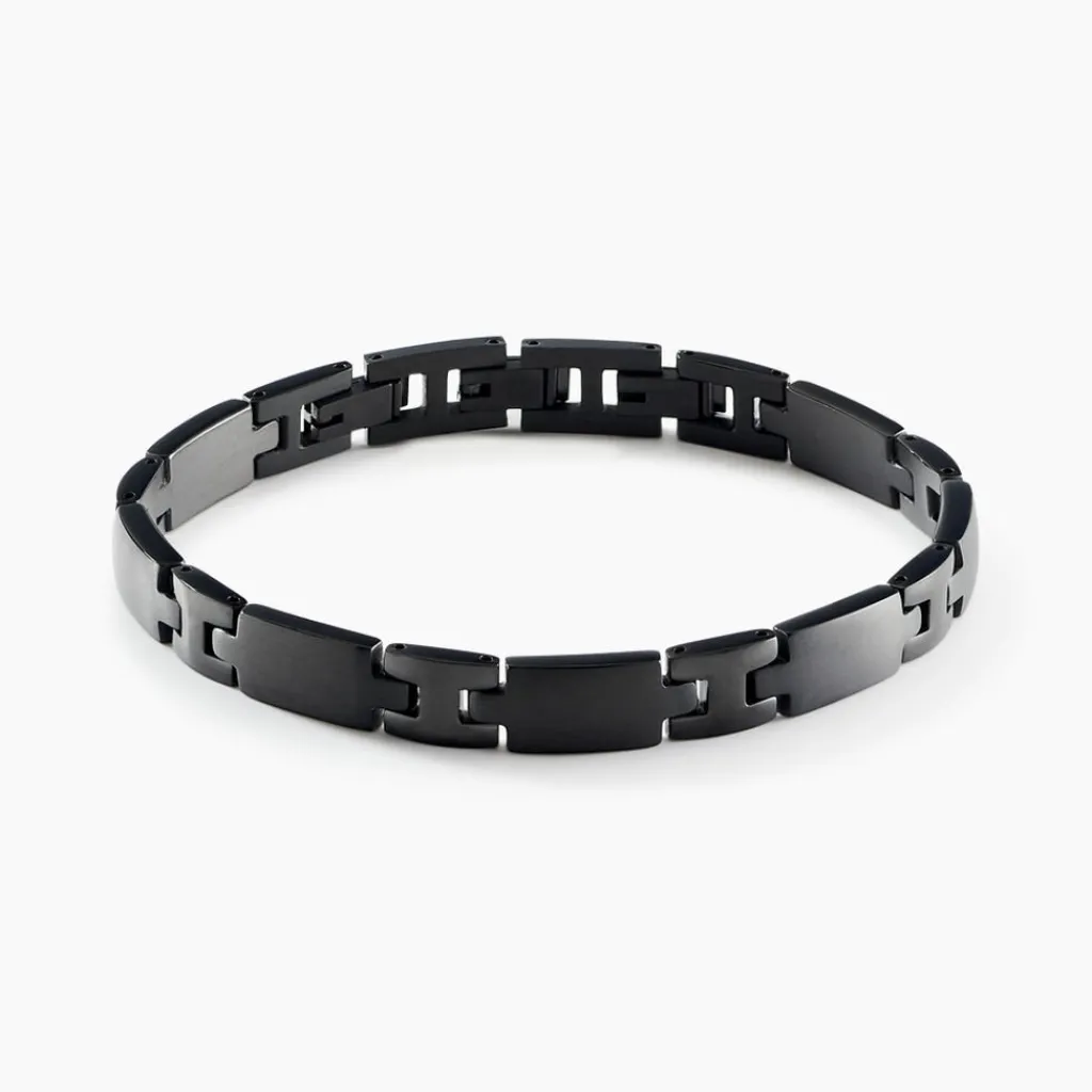 Bracelet Acier Inoxydable Noir Maillons Alternés Pm 21cm