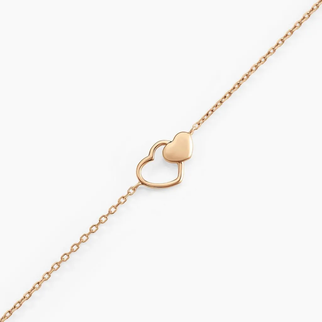 Bracelet Plaqué Or Jaune Maille Coeurs Doubles Maille Forcat 18cm