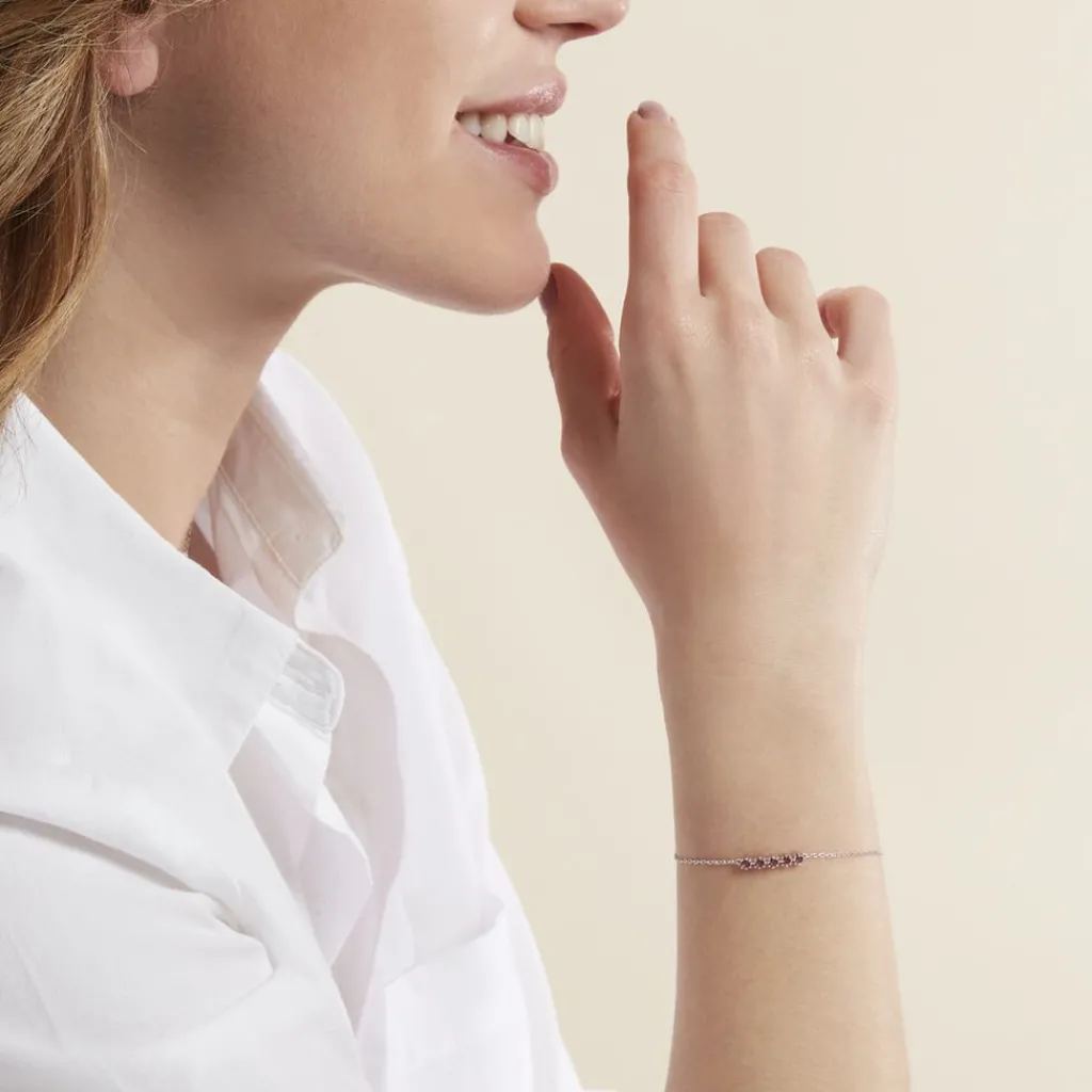 Bracelet Argent 925/1000 5 Oxydes De Zirconium Rouges Serti Griffes Effet Perlé Maille Forçat 19cm