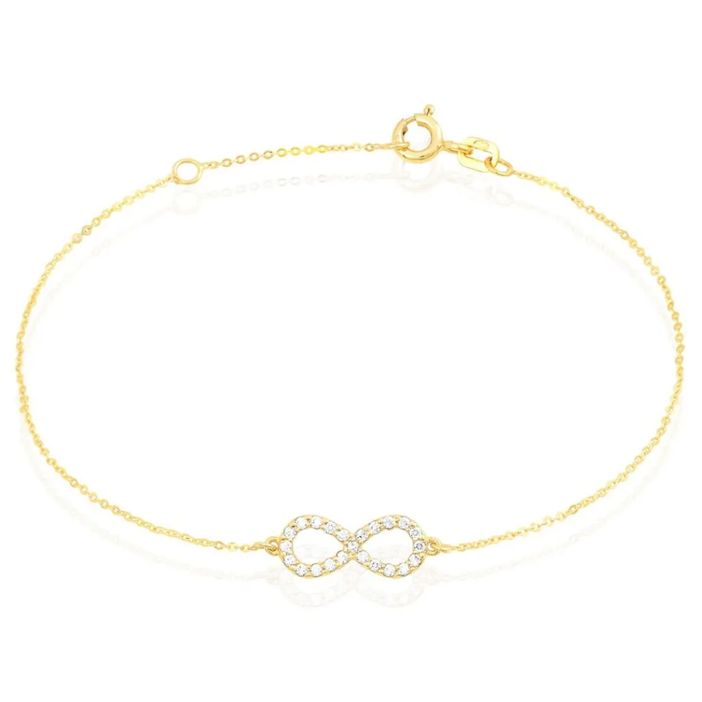 Bracelet Or Jaune 375/1000 Forme Infini Et Oxydes De Zirconium 18cm
