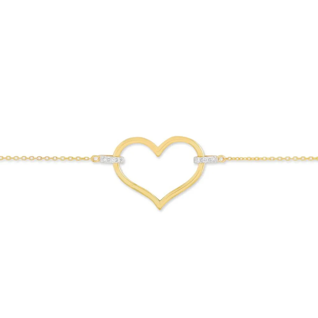 Bracelet Or Jaune 375/1000 C艙ur Diamants 18.5cm