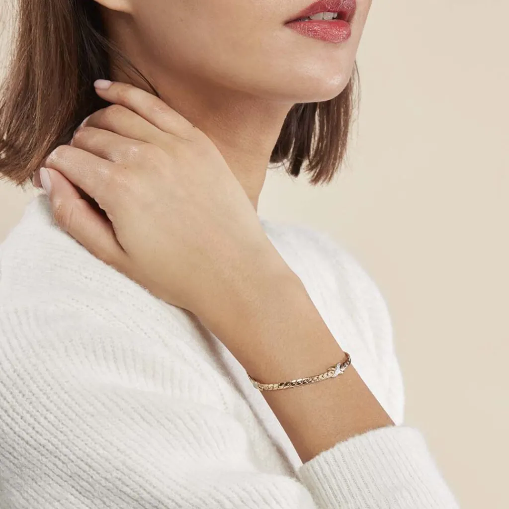 Bracelet Plaqué Or Jaune Oxyde De Zirconium Maille Anglaise Bicolore 3.9mm 18.5cm
