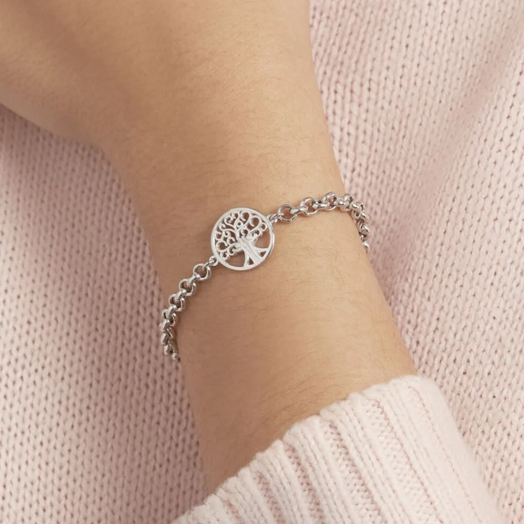 Bracelet Argent Blanc 925/1000 Arbre De Vie Maille Jaseron 18.5cm