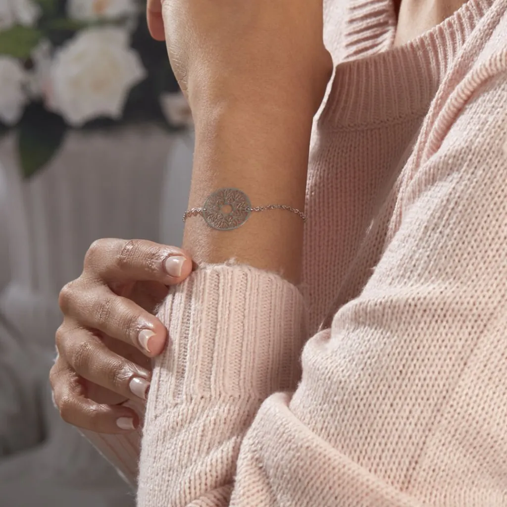 Bracelet Argent Blanc 925/1000 Rosace Maille Forcat 19cm