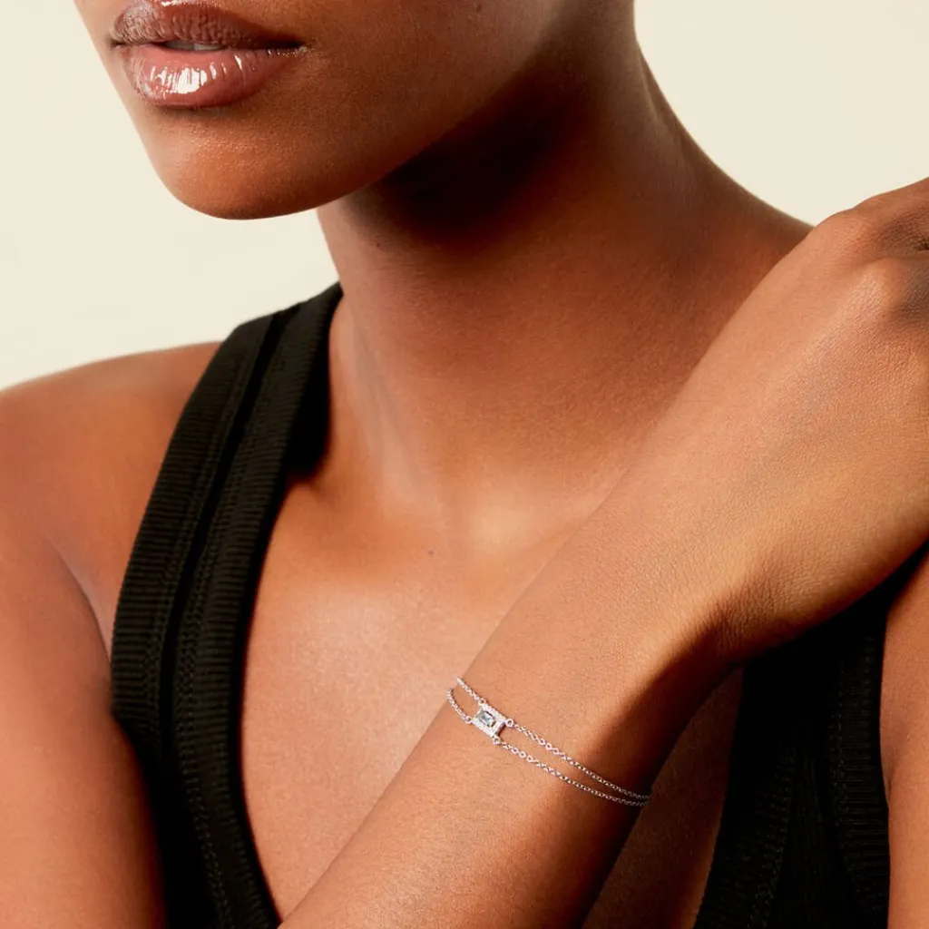 Bracelet Argent Blanc 925/1000 Rectangle Oxyde De Zirconium Azur Et Entourage Maille Jaseron 16+3Cm
