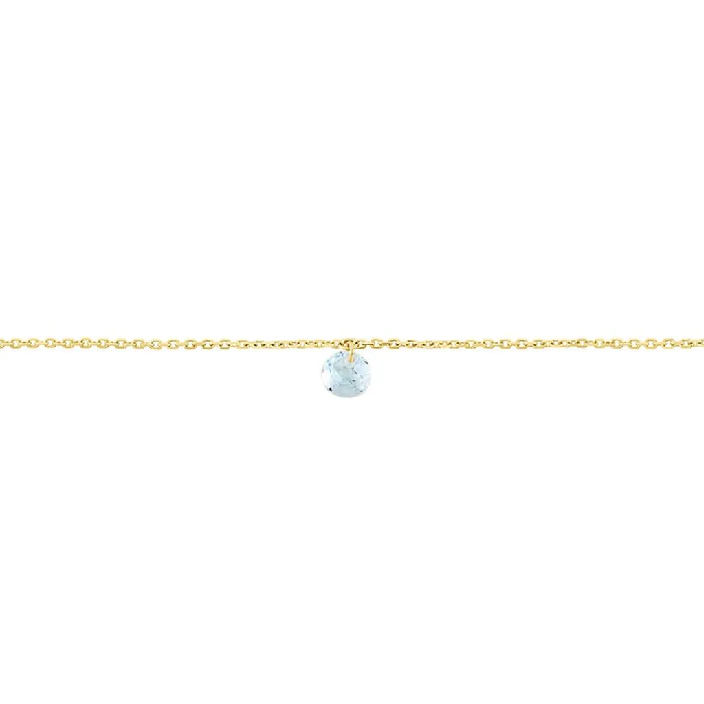 Bracelet Or Jaune 375/1000 Topaze Azur Ronde Percée 0.3 Cts Maille Forçat 18cm