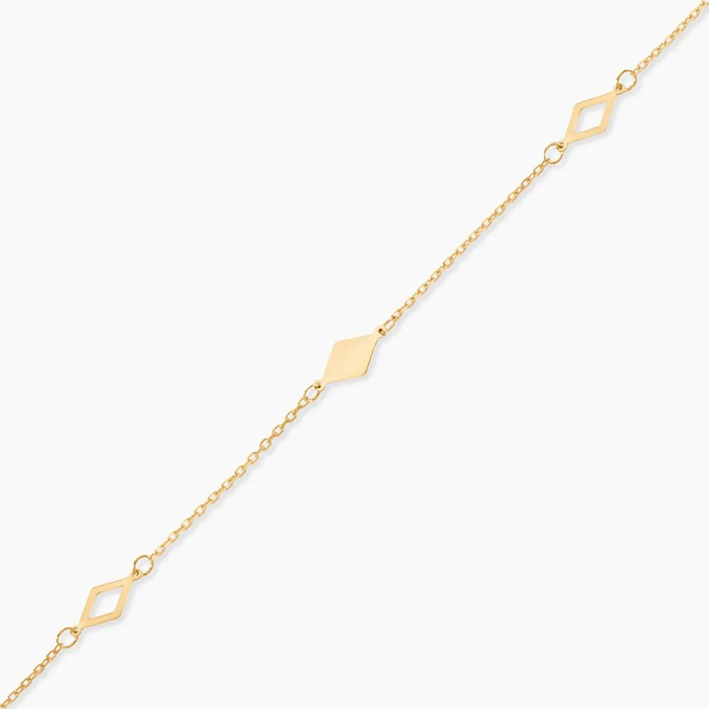 Bracelet Or Jaune 375/1000 Trilogie Losanges Maille Forcat 16+2Cm