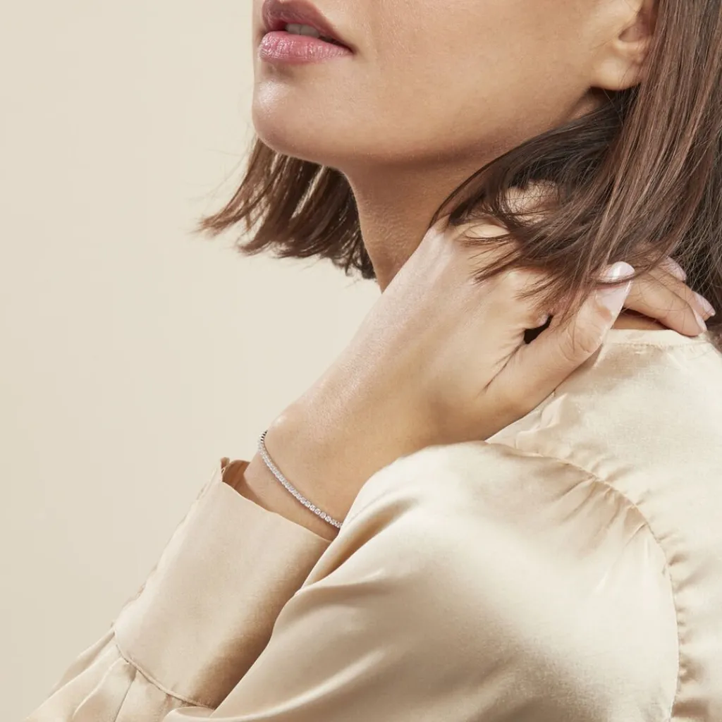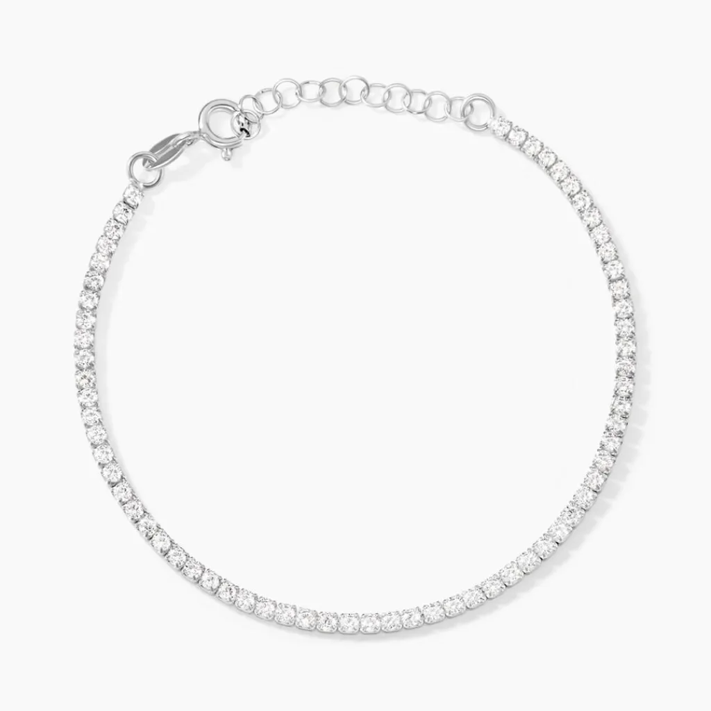 Bracelet Argent 925/1000 Rivière Oxydes De Zirconium 2mm Serti 4 Griffes Maille Tennis 19cm