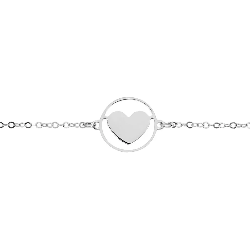 Bracelet Argent Blanc 925/1000 Cercle Coeur Maille Forcat 19cm