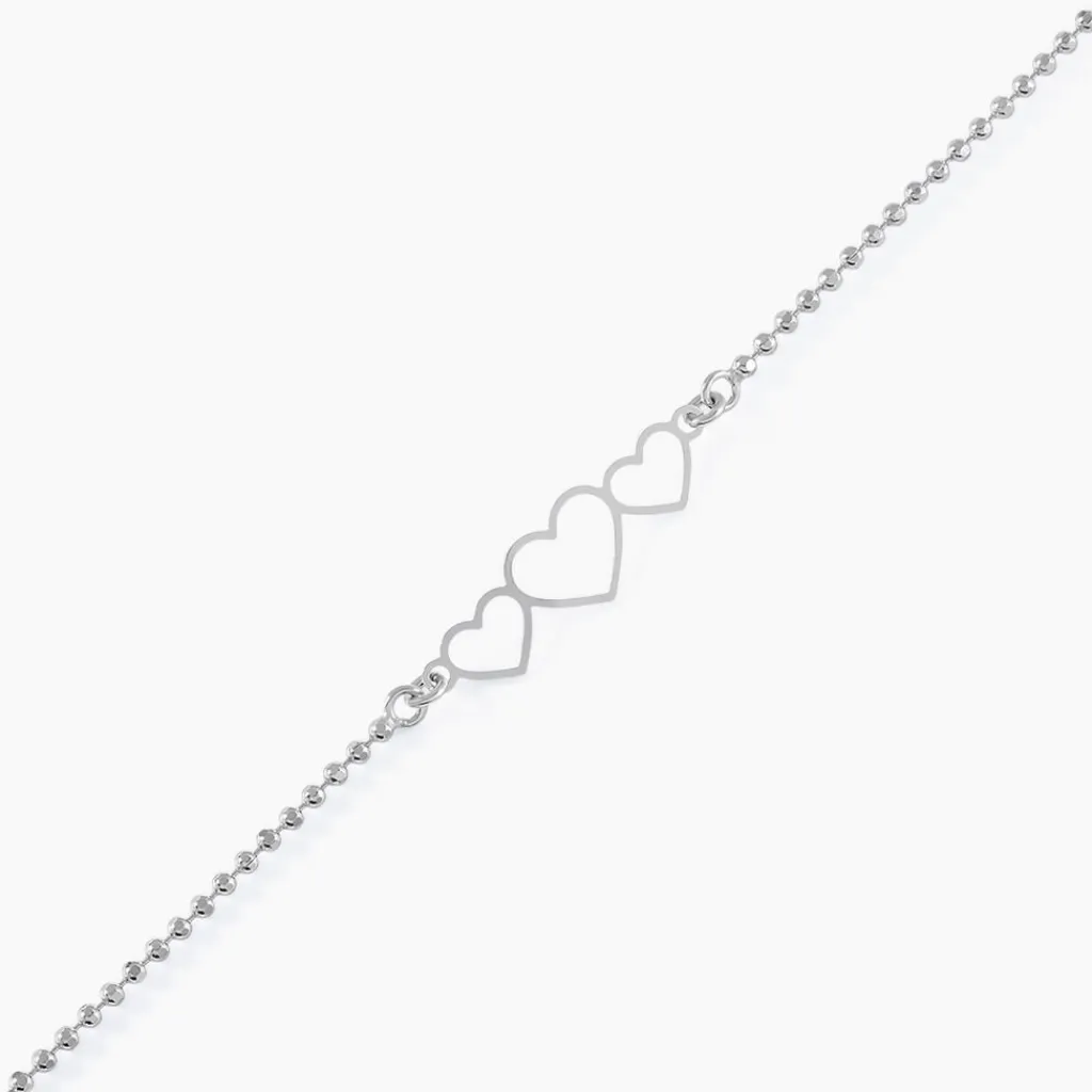 Bracelet Argent Blanc 925/1000 Triple Coeurs Ajoures Maille Boule 19cm