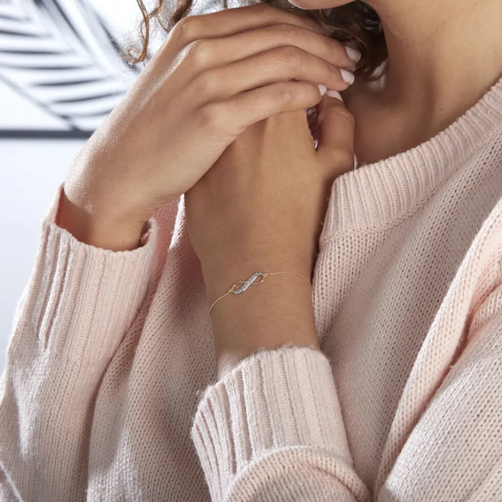 Bracelet Or Jaune 375/1000 Infini Effet Diamante Maille Jaseron 16+2cm