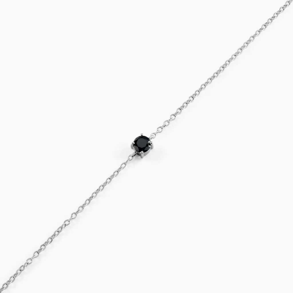 Bracelet Solitaire Argent 925/1000 Oxyde De Zirconium Noir Serti 4 Griffes 4mm Maille Forçat 19cm